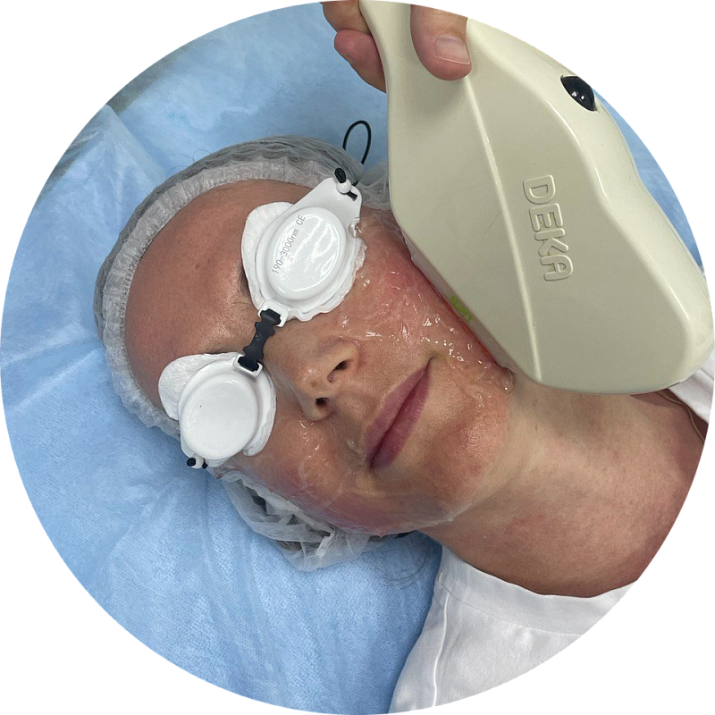 Борьба с куперозом является одной из самых востребованных процедур фототерапии IPL. Энергия световых лучей поглощается гемоглобином расширенных сосудов (телеангиоэктазий), что приводит к уменьшению их количества и постепенной нормализации состояния и цвета кожи. Если разлитую, сплошную эритему лучше удалять с помощью фототерапии, то единичные крупные расширенные сосуды (иногда их называют сосудистыми звездочками) как на лице, так и на теле предпочтительнее устранять неодимовым сосудистым лазером. Сочетание этих двух методов на одной платформе Deka позволяет наилучшим образом справиться как с распространенным куперозом, так и с отдельными «сосудистыми звездочками».